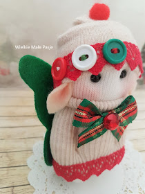 Ufff... jak to dobrze, że listopad dobiegł końca i tak szybko zleciał, bo jak wcześniej Wam pisałam nie lubię tego miesiąca. Mamy nareszcie grudzień, a Boże Narodzenie coraz bliżej. Pomalutku zaczynam przedświąteczne porządki, pichcenie i rozkręciłam się na dobre ze świątecznymi ozdobami :)).  Dziś pokażę Wam zatem taki świąteczny skarpetkowy miszmasz :)). Te prace pojechały jako mały gratis do Pani Ani, która wylicytowała mojego aniołka na Allegro Charytatywni - dla Lili. TUTAJ możecie jeszcze raz przeczytać o całej akcji, a dla przypomnienia aniołek wyglądał tak: